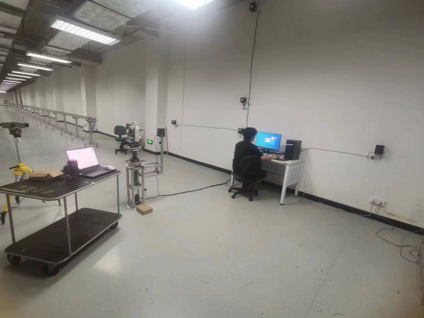 瞄准一个被检仪器正下方距离约为 1m 的直角坐标板的坐标原点。 上位机连接相机, 按上位机软件指示,分别在旋转 0°、 90°、 180°、 270°时进行测量,最终软件显示下对点误差。